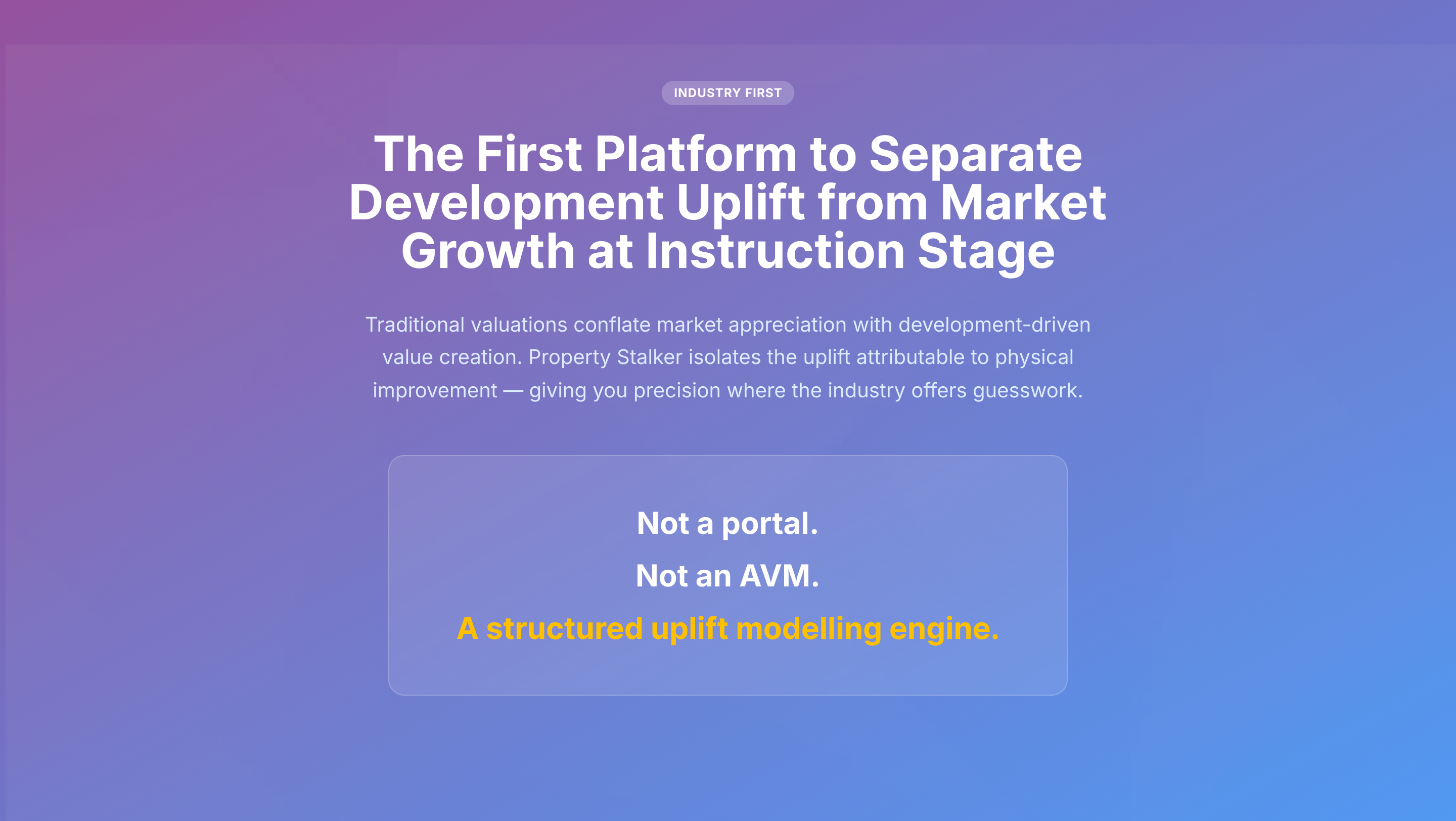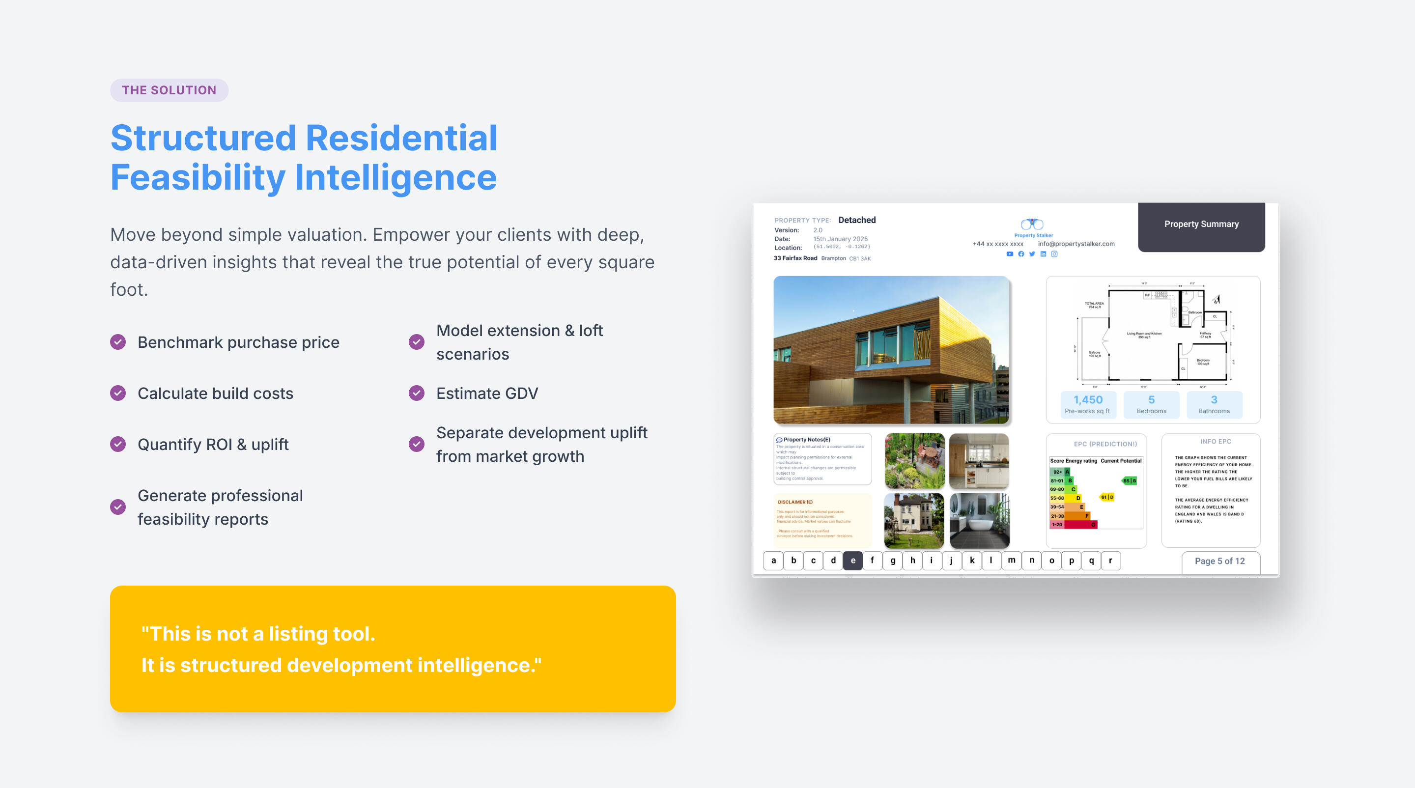 Property Stalker provides property development estimates and analytical outputs based on user inputs and available data.